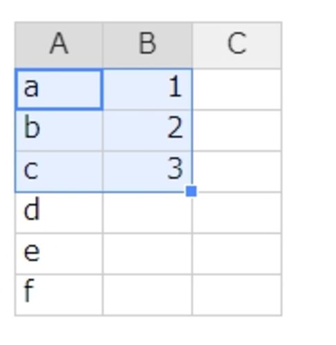 afterAutofill イベントフックの処理を定義する。例) var data = [ [ "a", 1, ], [ "b", 2, ], [ "c", 3, ], [ "d", ], [ "e", ], [ "f", ], ]; var hot = new Handsontable(document.getElementById("table"), { data:data, columns: [ { type: 'text', },…